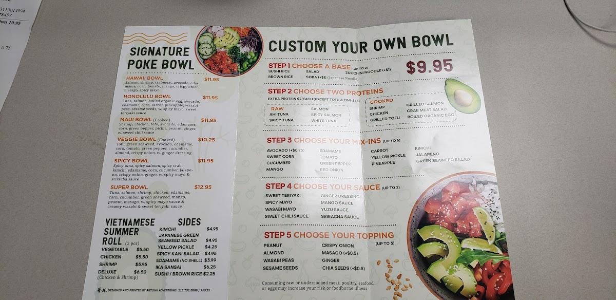 Introducing the menu at Aloha Poke, a vibrant eatery located in Fogelsville, PA, where freshness meets flavor. Here, you can immerse yourself in the Hawaiian-inspired poke bowl experience. Aloha Poke allows you to customize your own bowl for just $12.95, choosing from an array of proteins like chicken, shrimp, or tofu, and topping it off with fresh ingredients such as avocado, cucumber, and spicy mayo.